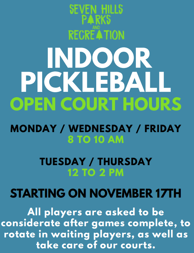 Indoor Pickleball Starts November 17th: