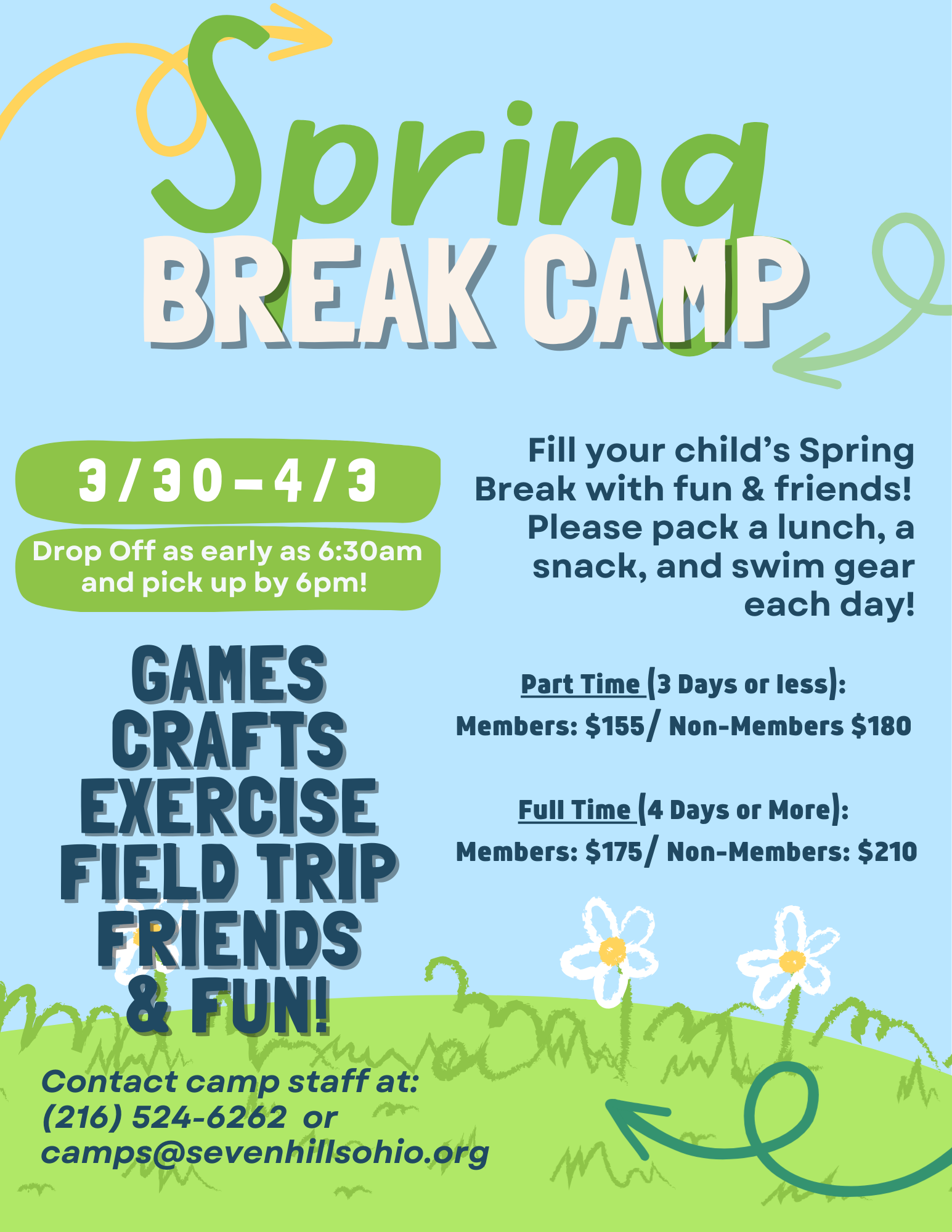 Fill your child’s Sprink Break with dun and friends! Please pack a lunch, snack, and swim gear each day.